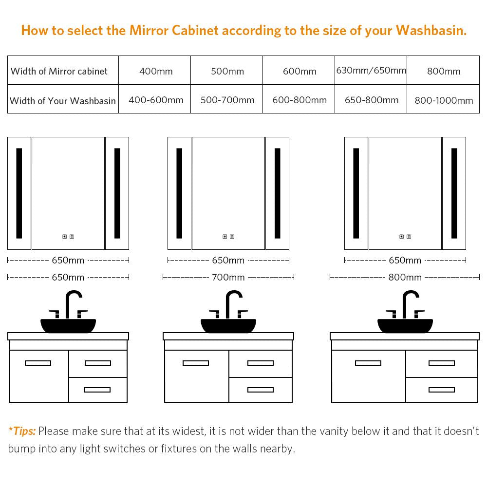 💠IP44 Rating: All our products are up to the standard of qualified IP44 rating which ensuring the cabinet is safe to use in the steamy atmosphere of the bathroom and effectively protect you and your family.