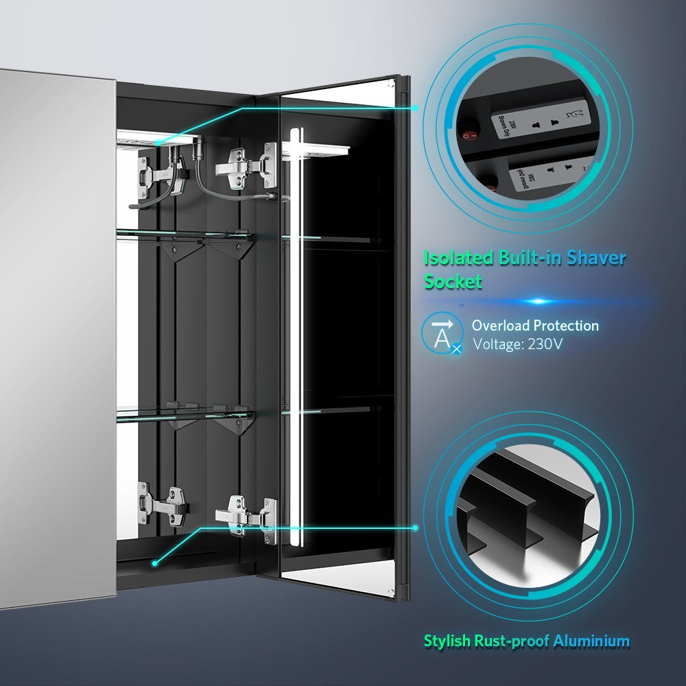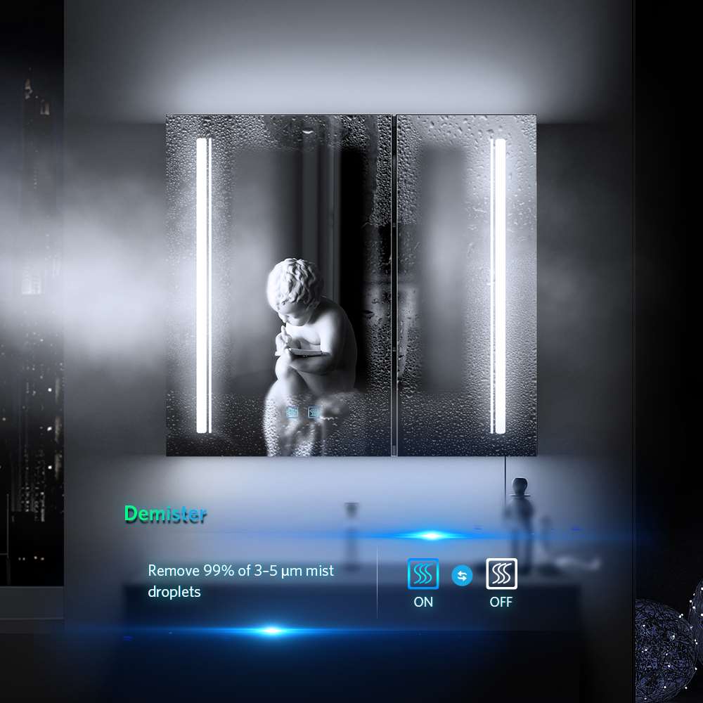 💠Demister Pad: Which is completely concealed inside the double sided mirror door. Rapidly heating up and providing steam free viewing. Be delighted to enjoy the clearest viewing while surrounding by mist and moisture.