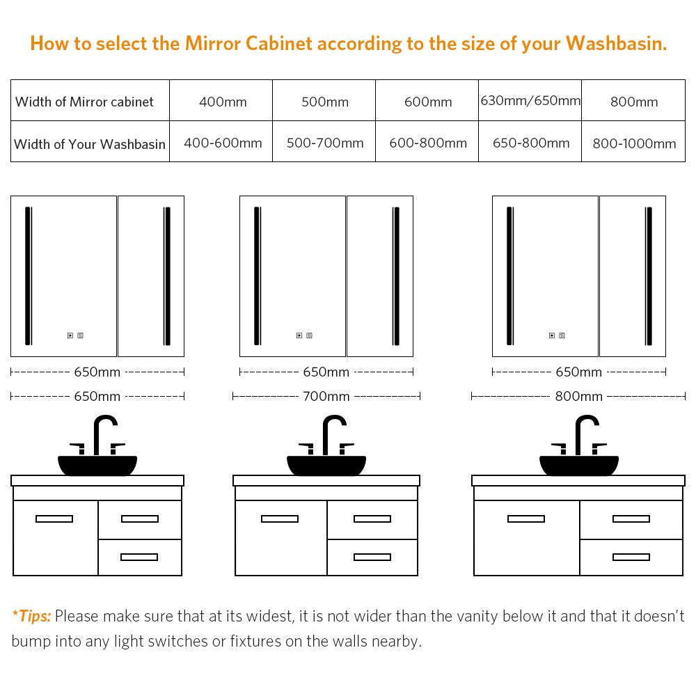 💠IP44 Rating: All our products are up to the standard of qualified IP44 rating which ensuring the cabinet is safe to use in the steamy atmosphere of the bathroom and effectively protect you and your family.
