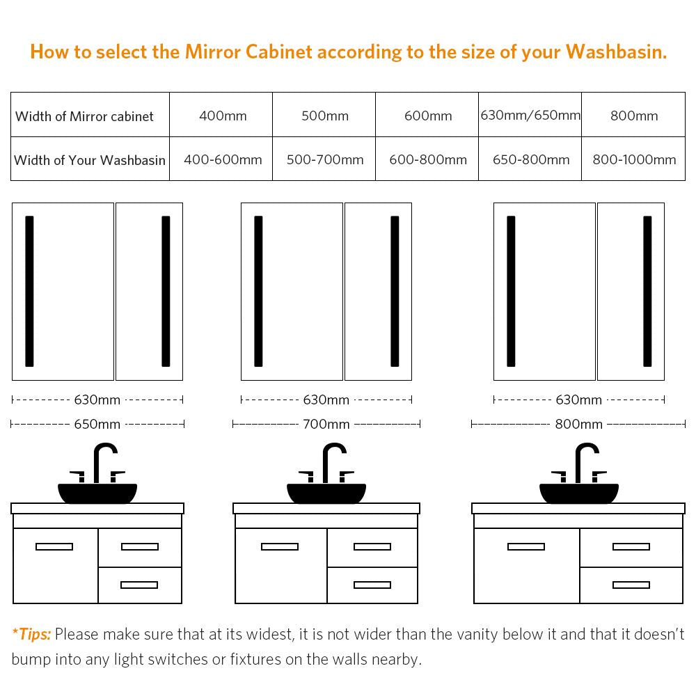 π IP44 Rating: All our products are up to the standard of qualified IP44 rating which ensuring the cabinet is safe to use in the steamy atmosphere of the bathroom and effectively protect you and your family.